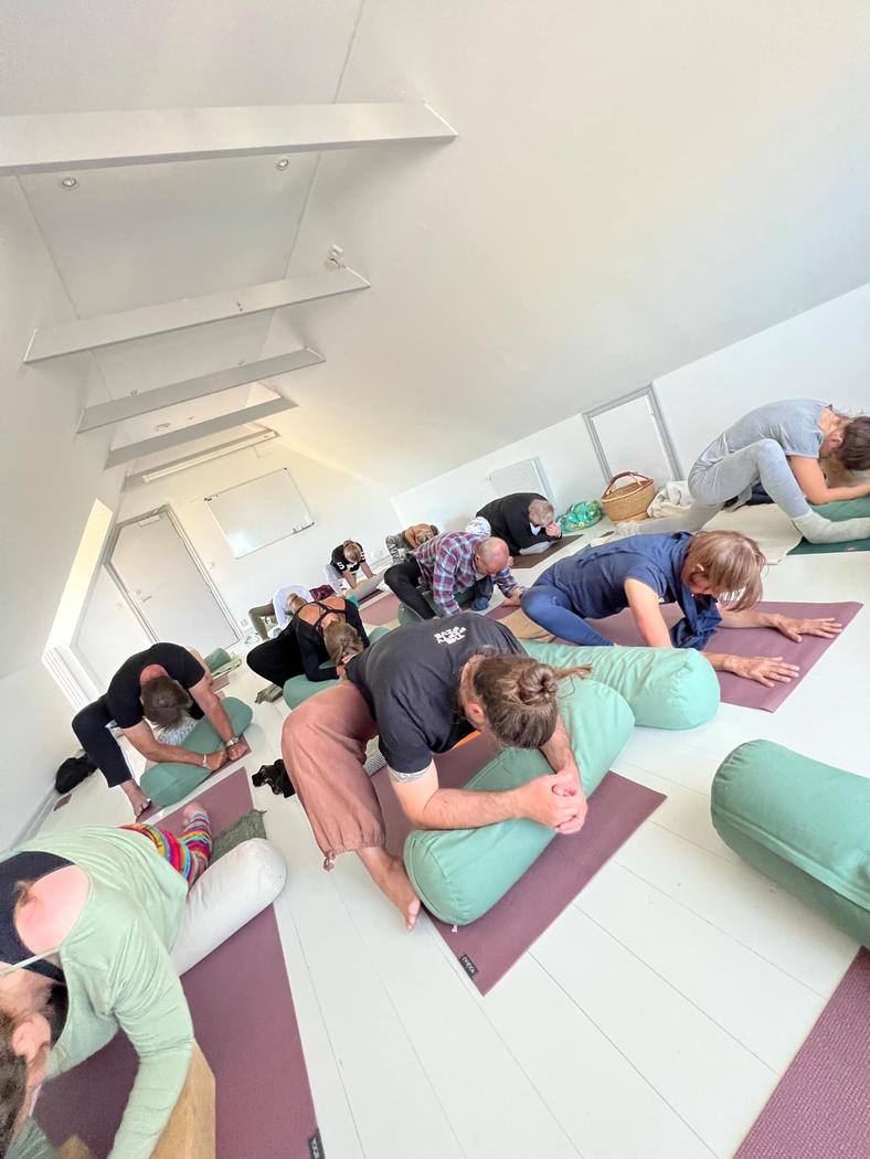 Yoga och rörelse: Dynamisk Vinyasa, lugnande YinYoga, Somatics och mindful rörelse.
